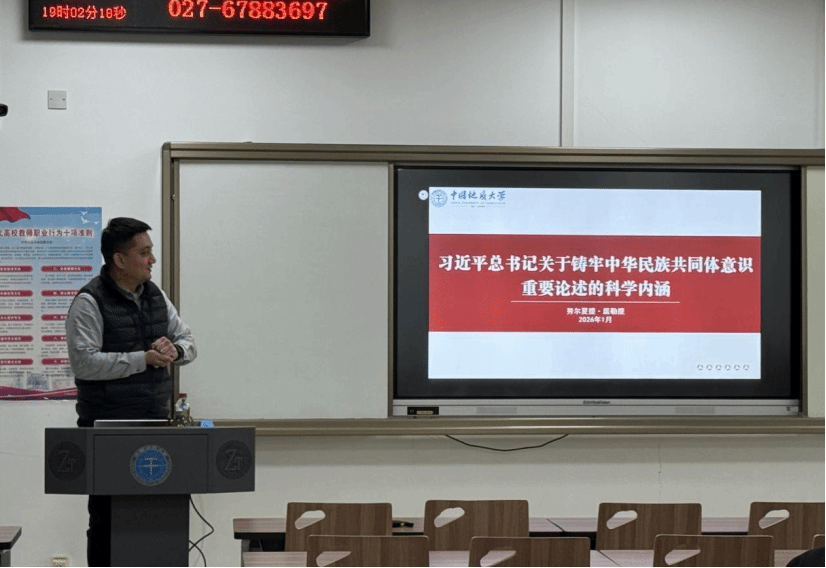 针对习近平总书记关于加强和改进民族工作的重要思想,努尔夏提老师详细说明了“十二个必须”以及其理论来源和实践逻辑。接着,老师介绍了铸牢中华民族共同体意识的内涵要义和总体要求,他强调,铸牢中华民族共同体意识,就是要引导各族人民牢固树立休戚与共、荣辱与共、生死与共、命运与共的共同体理念。