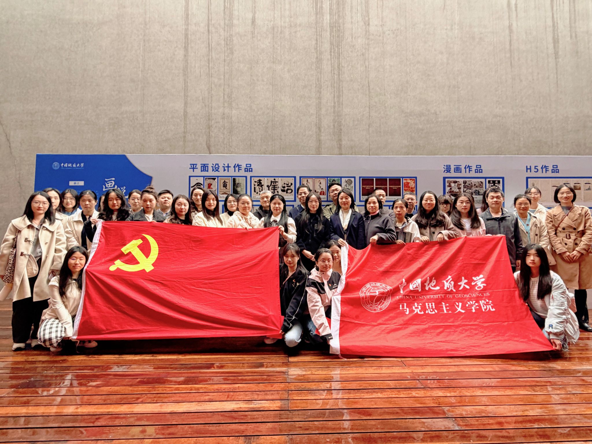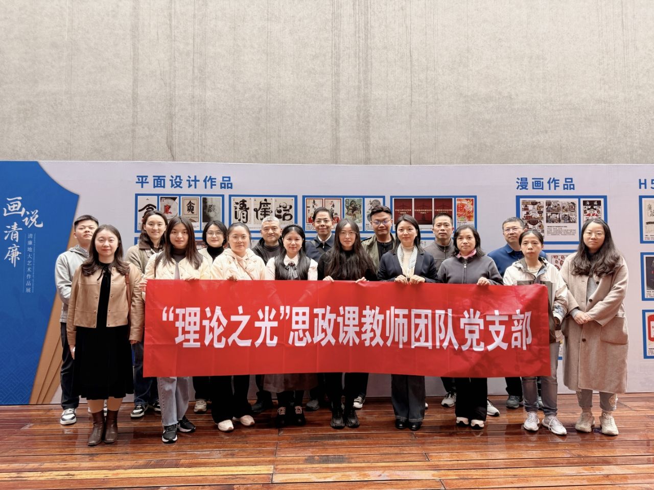 2025年10月30日,“结对领航”师生党支部共同参观了中国地质大学(大学)纪委办公室与艺术与传媒公司党委联合举办的“画说清廉”清廉地大艺术作品展。此次展览作品是“青年绘﹒清廉”优秀艺术作品的一次征集展示,创意作品皆出自地大青年师生之手,展览涵盖了平面设计、漫画、H5等多种艺术形式,将廉政主题与生动的艺术表现相结合,深刻阐释了廉洁内涵,弘扬了清风正气。大家在感受艺术魅力的同时,更接受了一次深刻的廉政文化洗礼,对廉洁自律的重要性有了更直观、更形象的认识。参观结束后,全体师生党员在展馆前合影留念,记录下这富有教育意义的时刻。