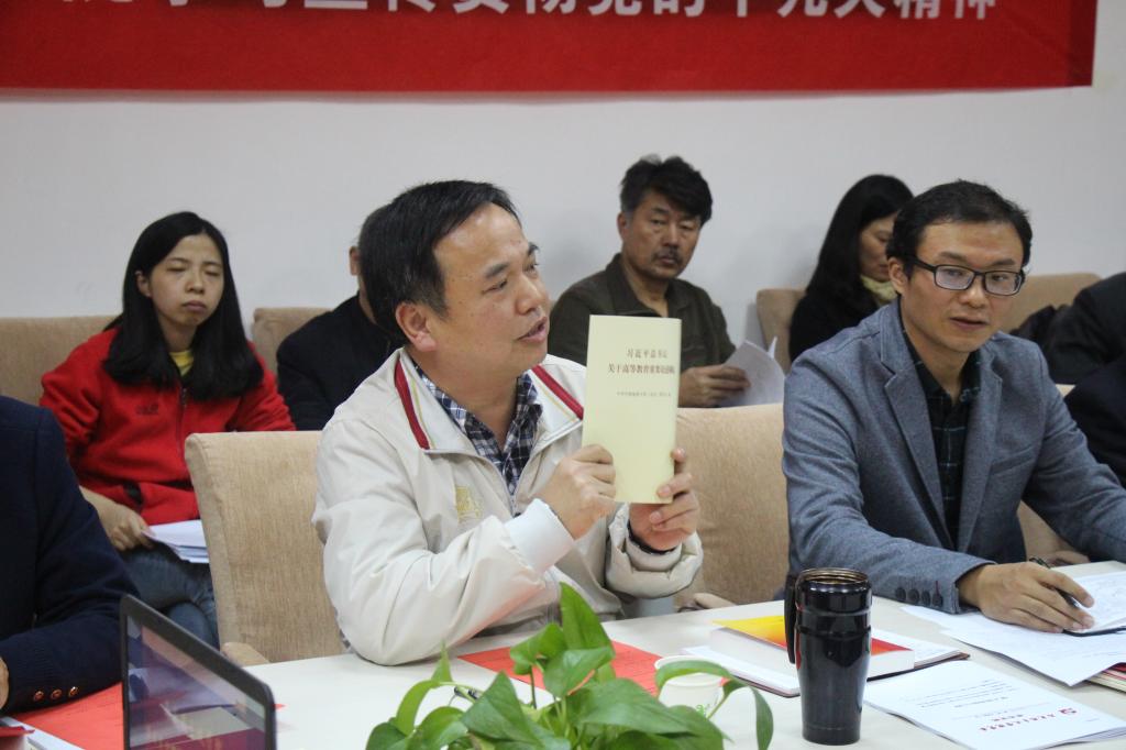 公司党委书记何光彩同志为教工党员、员工代表发放《中国共产党章程》、《党十九大报告辅导读本》和《习近平总书记关于高等教育重要论述摘编》等学习资料。