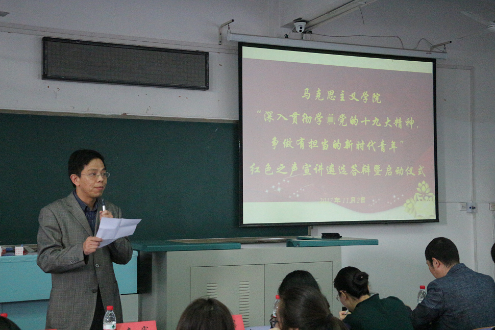最后,公司党委书记侯志军老师总结讲话。他指出公司“红色之声”宣讲活动有很高的政治价值和很好的实践价值、人才培养价值,“红色之声”宣讲是“学懂、弄通、做实”党的十九大精神的重要载体。同时,侯书记对参加宣讲的同学提出要求,一是要做好角色定位,要始终按照中央要求,以员工喜闻乐见的方式进行理论宣传;二是要提高能力,在宣讲过程中提升学习能力、研究能力和表达能力。三是要实干。在实现“两个一百年”和“中国梦”的伟大进程中勇于奋斗,勇于创新,争当“有理想、有本领、有担当”的新时代青年,成为中国特色社会主义的合格建设者和可靠接班人。