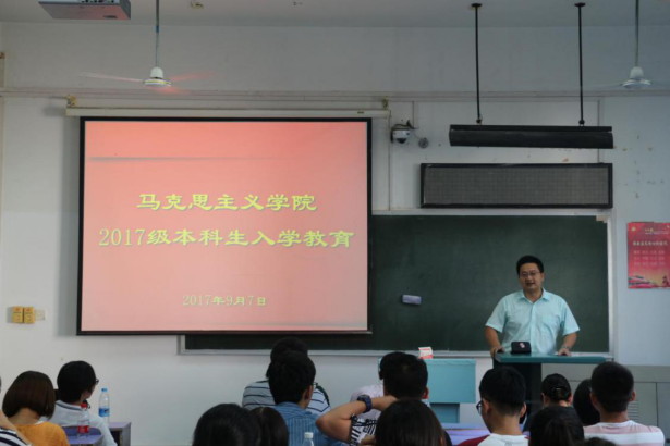 为使新生更好地了解自己的专业,促进其未来的学习和发展。9月7日下午4点,公司2017级本科生入学教育活动在教三楼302顺利举行。院长高翔莲老师、副经理张存国老师、副经理陈军老师、思想政治教育系主任严世雄老师、思想政治教育系何英老师、新生班主任李敏伦老师以及2017级全体本科生参加。