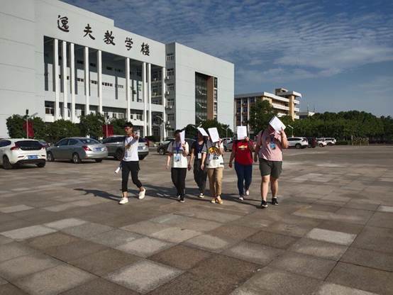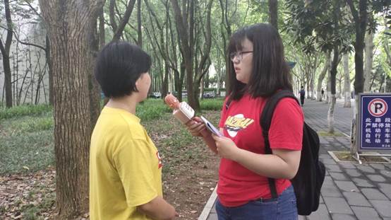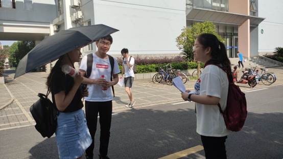 你知道发问卷时遇到同学们考试要怎么办吗?爱国新青年团队告诉你:要耐心。一天早上8时,团队成员到达武汉纺织大学阳光校区准备发放问卷。当时正值武汉纺织大学员工期末上机考试,于是戴诗雅、赵雪渊便在多次等员工考完试后进教室发放问卷,在员工考试期间便在教室外耐心等待。