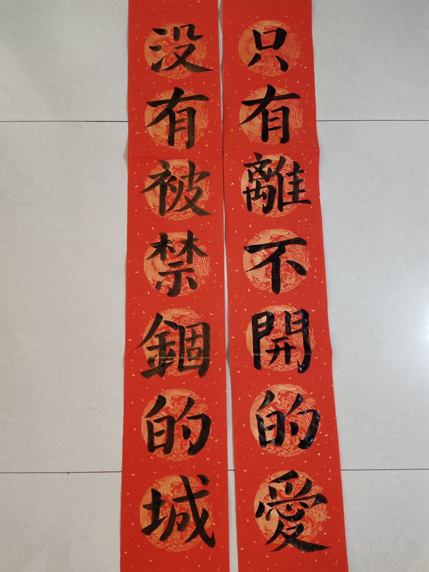 疫情的发生也许阻断了我们回家的脚步,阻断了我们与亲人的相聚,但却无法阻断我们的心,我们的爱。这幅书法作品是高睿晗同学居家隔离时所作,借用网上流行的金句,抒发对抗击疫情信心与对武汉“康复”的期盼。春联寄托着一个家庭对一年生活的美好祝愿,希望这幅特殊的春联能带给所有抗击新冠病毒的人健康与平安。“没有被禁锢的城,只有离不开的爱。”没有不可治愈的伤痛,没有不能结束的沉沦,所有失去的,会以另一种方式归来。没有一个冬天不可逾越,没有一个春天不会来临。