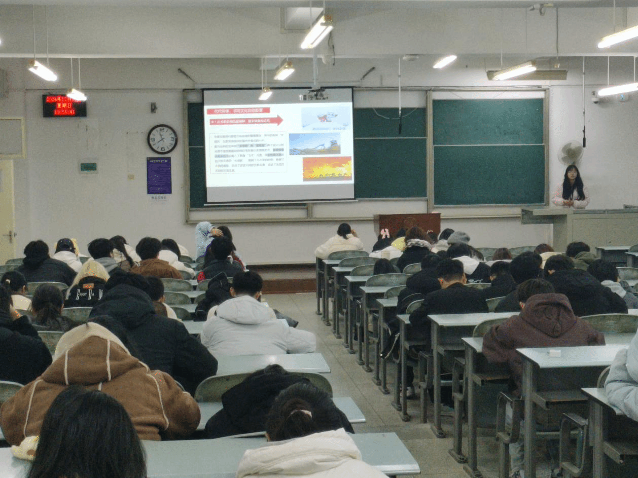 活动伊始,李静怡作为主讲人,结合马克思主义理论与中国文化的深厚底蕴,带领同学们从文化自信的定义、文化自信的重要性、当代社会中坚守文化自信的优秀案例三个方面深入探讨了坚守文化自信的逻辑以及当代青年在传承和发扬文化自信中的责任与担当。李静怡的讲解深入浅出,使同学们对文化自信的内涵有了更加全面和深刻的认识。