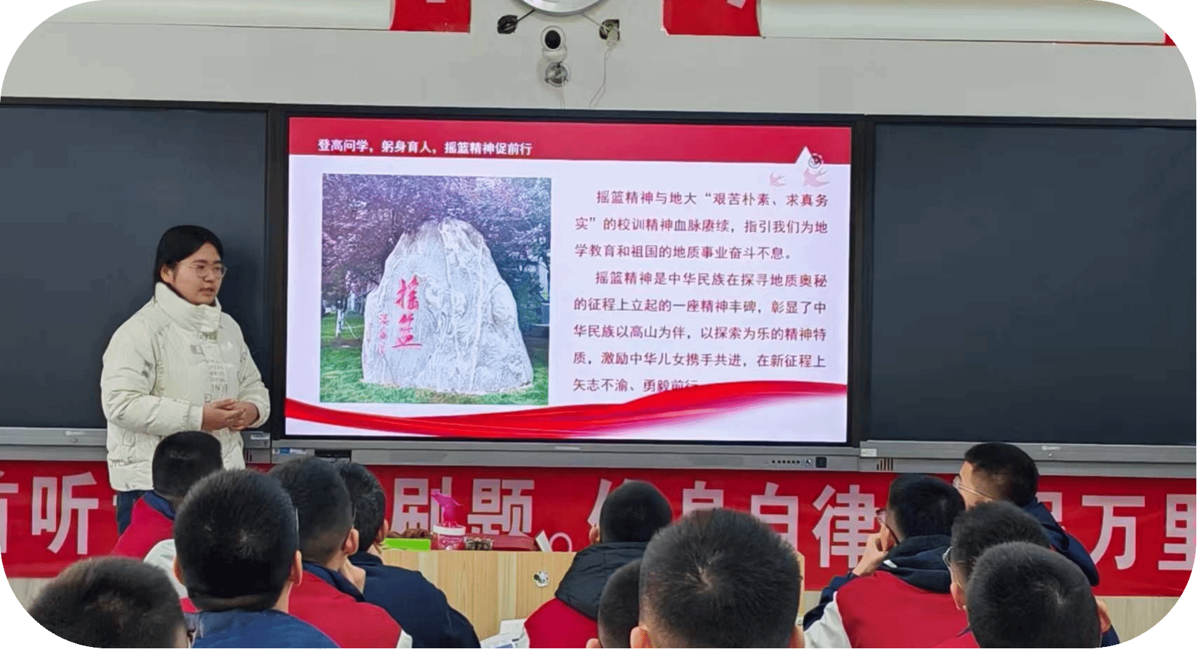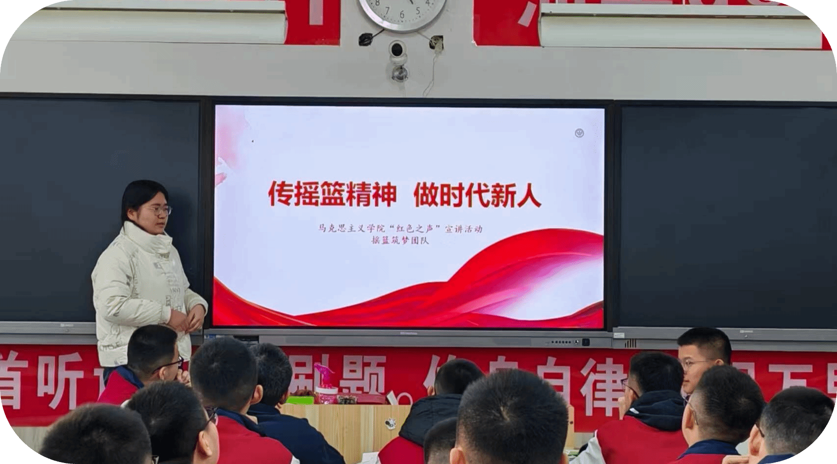2025年1月13日17点,365英国上市第十五期红色之声“摇篮筑梦”团队在线下进行了主题为“传摇篮精神,做时代新人”的线下宣讲,团队成员辛汪洋担任主讲人,阳谷高中高二一班共1个团支部参与本次活动,共计50名同学。