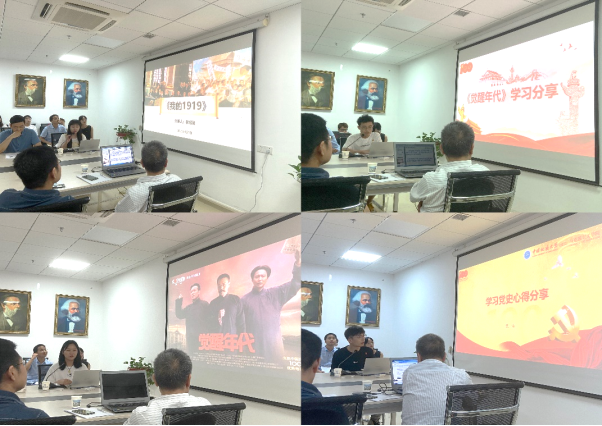 第二项主题为“党史学习心得交流”。今年3 月公司召开了党史学习教育动员大会,对全体师生党员提出了要做到“四个一”的要求,公司全体师生贯彻执行“四个一”要求,即“读一篇党史著作、写一篇读书笔记、参观一次党史纪念馆、看一部党史电影”。本次交流会上,来自2020级马克思主义理论硕士生党支部的四名党员同志对前期的党史学习情况进行交流分享。侯绍薇同志分享了电影《我的1919》,她通过对比当年巴黎和会的“弱国无外交”到今年阿拉斯加中美会谈中杨洁篪主任的硬气外交,表达了珍惜历史机遇,胸怀伟大梦想的青年担当。戴成波同志和晋曼钰同志围绕今年大热的电视剧《觉醒年代》分享了自己的观剧感悟。他们回顾历史,结合当下热点,向大家阐明了我们今天的美好生活就是觉醒年代的续集,当今中国仍然需要“觉醒”精神,我们青年人需要接过革命先驱的接力棒接续奋斗。史涛同志根据自己最近阅读的《中国共产党简史》等党史书籍,认为学习党史必须坚持唯物史观、必须善于总结思考、必须学习党百年奋斗历程中的各种伟大精神以及必须从实践出发践行党的宗旨。