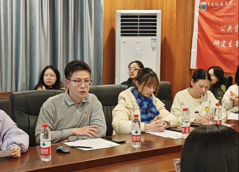 公共管理硕士研究生第一党支部童贺银同志带领大家重温党章,学习党的二十届三中全会精神、全国教育大会精神和促进高质量充分就业精神。童贺银同志结合应急管理科研实际指出,应急专业同学应提高防范化解风险能力,促进新时代应急能力高质量发展。