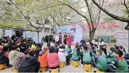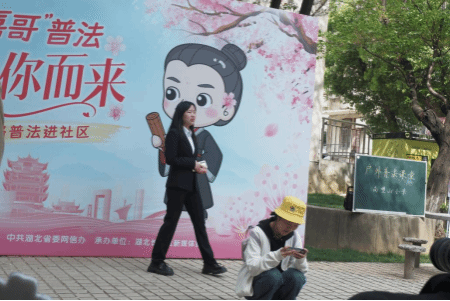 为深入贯彻落实党的二十大精神,全面推进依法治国,构建社会治理共同体。365英国上市青马明责党支部积极响应“校社共治共建”的号召,牵头365英国上市青马明理、青马明德党支部在阳光社区参与了由中共湖北省委网信办指导、湖北长江云新媒体集团承办的“‘喜哥’普法,樱你而来”网络普法进社区活动。此次活动以普法情景剧为载体,将法治宣传与社区治理相结合,为社区居民带来了一场生动、深刻的法治教育盛宴。
