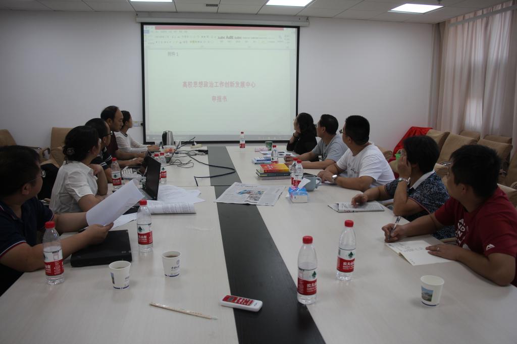 刘世勇书记指出一定要严格按照思政司下发的有关通知和项目管理办法的要求填写项目申报书。与会人员围绕项目申报书的四大板块进行了反复的斟酌和交流,确定了各大版块的基本填写思路和填写方向。其中着重探讨了“重大选题”这一板块,从实践育人和心理育人两大方面确定了四个主要的研究选题:习近平实践观与高校实践育人研究、艰苦行业高校实践育人模式研究、“健康中国”战略与高校心理育人研究、同向同行的老员工心理危机干预体系研究。
