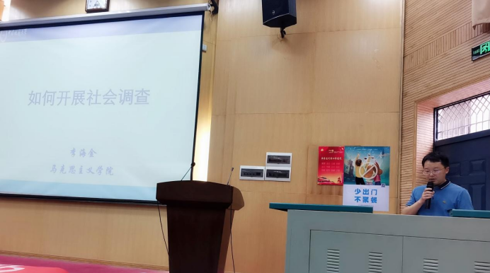 最后,李海金副经理作《社会调查方法》专题报告,对参会师生进行社会调查方法培训。他从如何进行选题、如何设计调查方案、如何进行社会调查、怎样撰写调查报告四个方面介绍,对开展社会调查及完成调查报告的相应步骤及方法进行完整的讲述。他强调,一份高质量的调查报告源于科学合理的调查设计,具有高信度、高效度的数据资料收集,并且需要对资料进行正确适当的分析,希望同学们在实践中注重数据资料收集,注重数据分析方法的运用,顺利完成社会调查活动。
