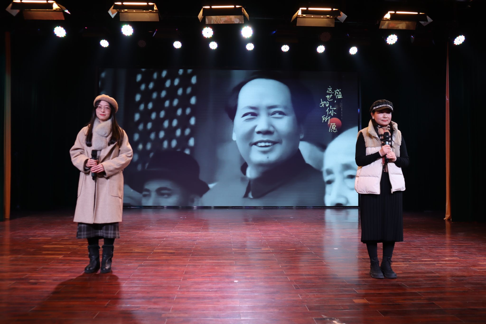 图8:赵晨希、朱鹤灵和谭思懿诗朗诵《马院有点甜》