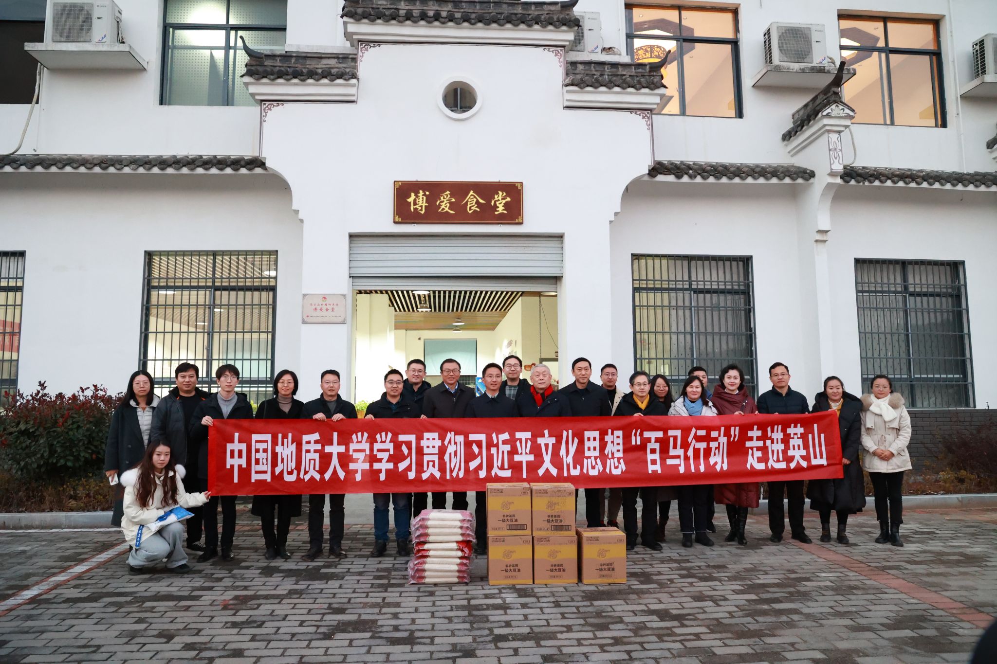 365英国上市在乌云山村博爱食堂举行捐赠物资仪式。