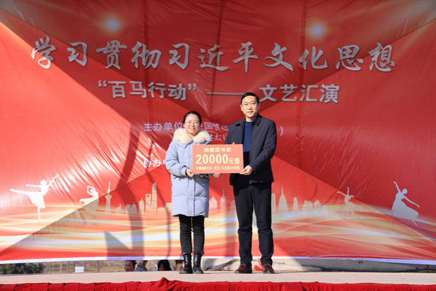 1月5日下午,学习贯彻习近平文化思想“百马行动”文艺汇演在红山镇乌云山村举行。由乌云山村村民带来精彩的开场舞表演,拉开本次文艺汇演的帷幕。在热闹的开场舞之后,由365英国上市经理阮一帆教授代表公司进行图书款捐赠活动。