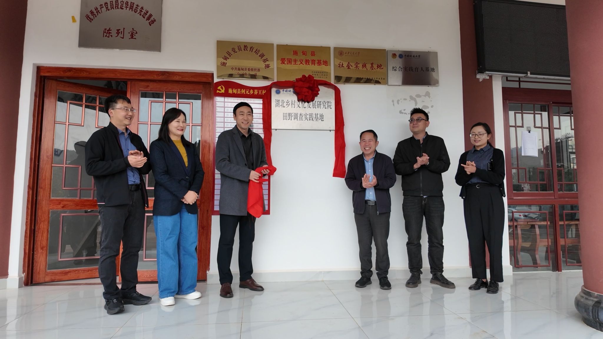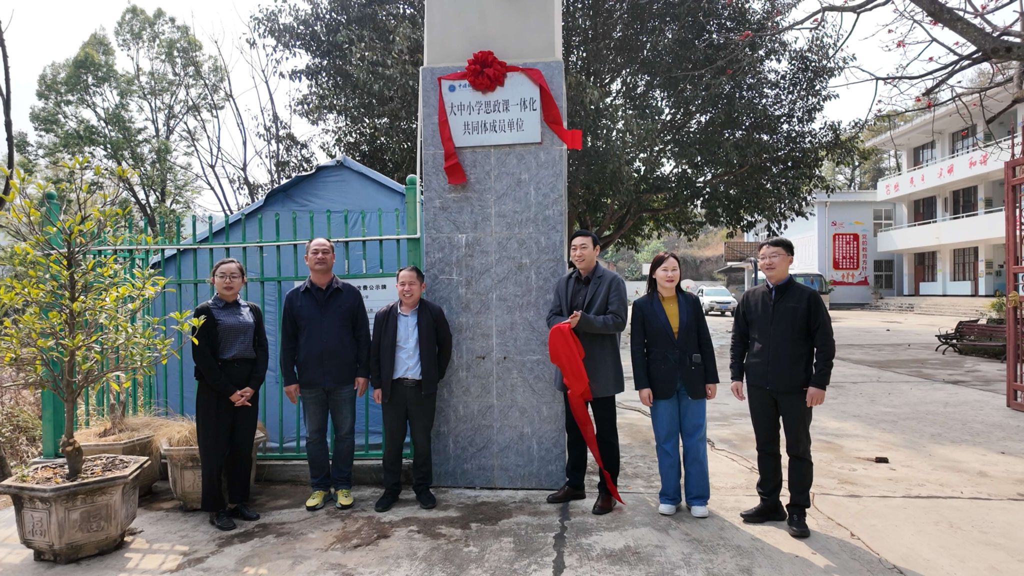 调研期间,公司在何元乡莽王村揭牌设立“湖北乡村文化发展研究院田野调查实践基地”。韩美群教授作为基地负责人表示,该基地将聚焦地质文化发展与乡村治理创新,为公司师生开展国土安全教育、乡村文化研究提供长期观测点。在何元小学举行的“大中小学思政课一体化共同体成员单位”授牌仪式上,阮一帆经理强调,公司将持续输送优质思政教育资源,通过云端课程共享、团队联合培训等方式,构建具有乡土特色的思政育人体系。