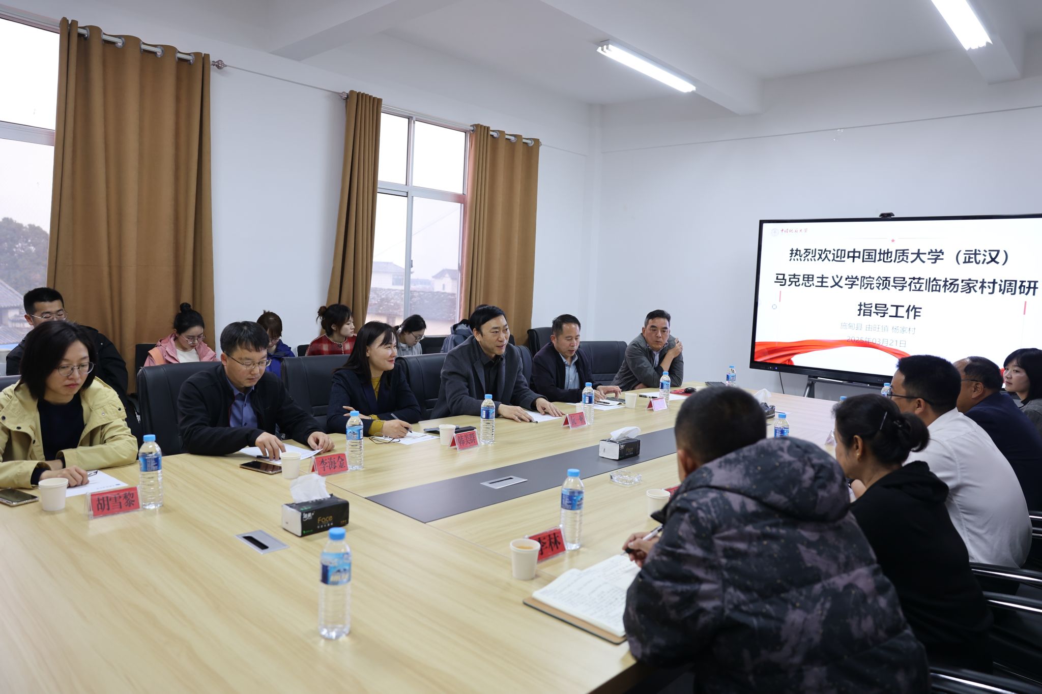 3月21日下午,公司与施甸县人民政府联合召开“定点帮扶工作总结推进座谈会”。阮一帆经理谈到,公司始终把服务乡村振兴战略作为使命担当,近年来围绕施甸县发展需求,充分发挥马克思主义理论学科优势,在教育帮扶、文化振兴、基层治理等领域取得阶段性成果。他表示,公司将以此次调研为纽带,进一步整合湖北乡村文化发展研究院、大中小学思政课一体化建设平台等资源,助力施甸打造“地质文化+红色教育”融合发展的乡村振兴示范样本。施甸县副县长李娅、田永常均高度评价校地合作成效,期待深化富硒农业开发、非遗文化活化等领域的产学研合作。最后,李海金副经理、韩美群教授对具体调研内容、任务作具体说明安排。