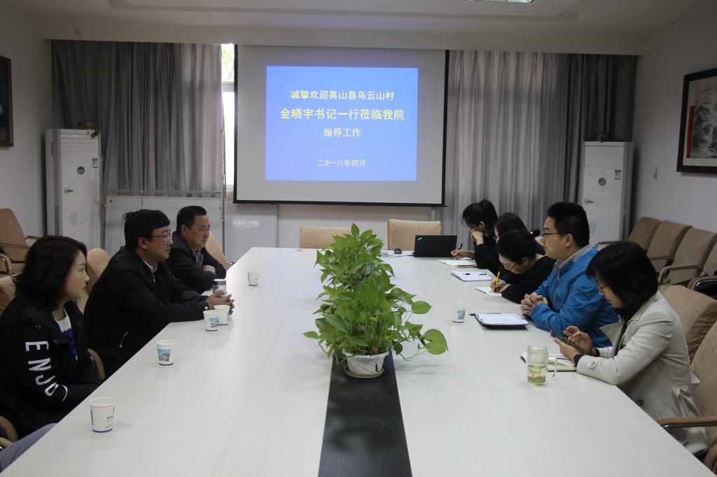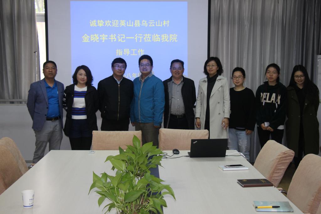2018年4月14日,英山县红山镇乌云山村党支部书记金晓宇一行,莅临公司,就公司和乌云山村共同承担的湖北省“理论热点面对面”示范点建设工作展开座谈。副经理陈军、公司办公室主任胡雪黎及部分研究生代表参加了会议。