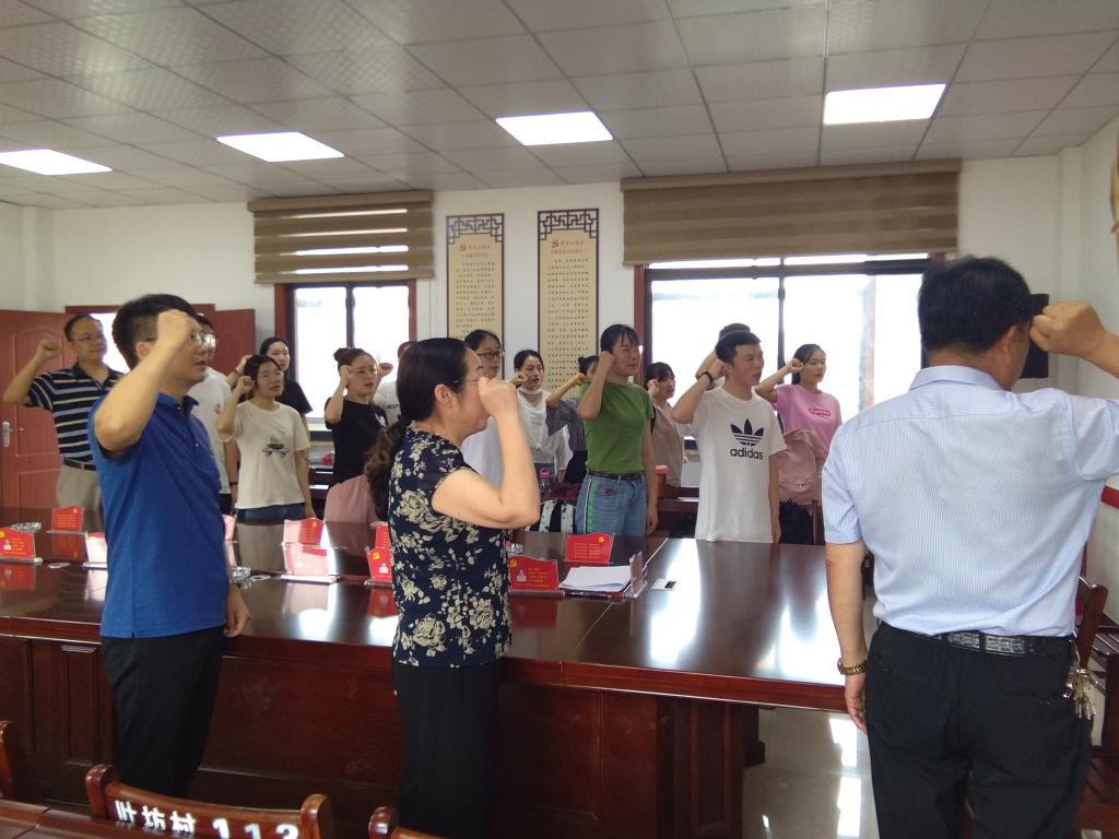 7月6日,马院师生来到调研的第一站:叶家坊村。在村干部带领下,共同参观叶家坊村村史馆和党员活动中心,并在会议室庄严宣誓,重温入党誓词。