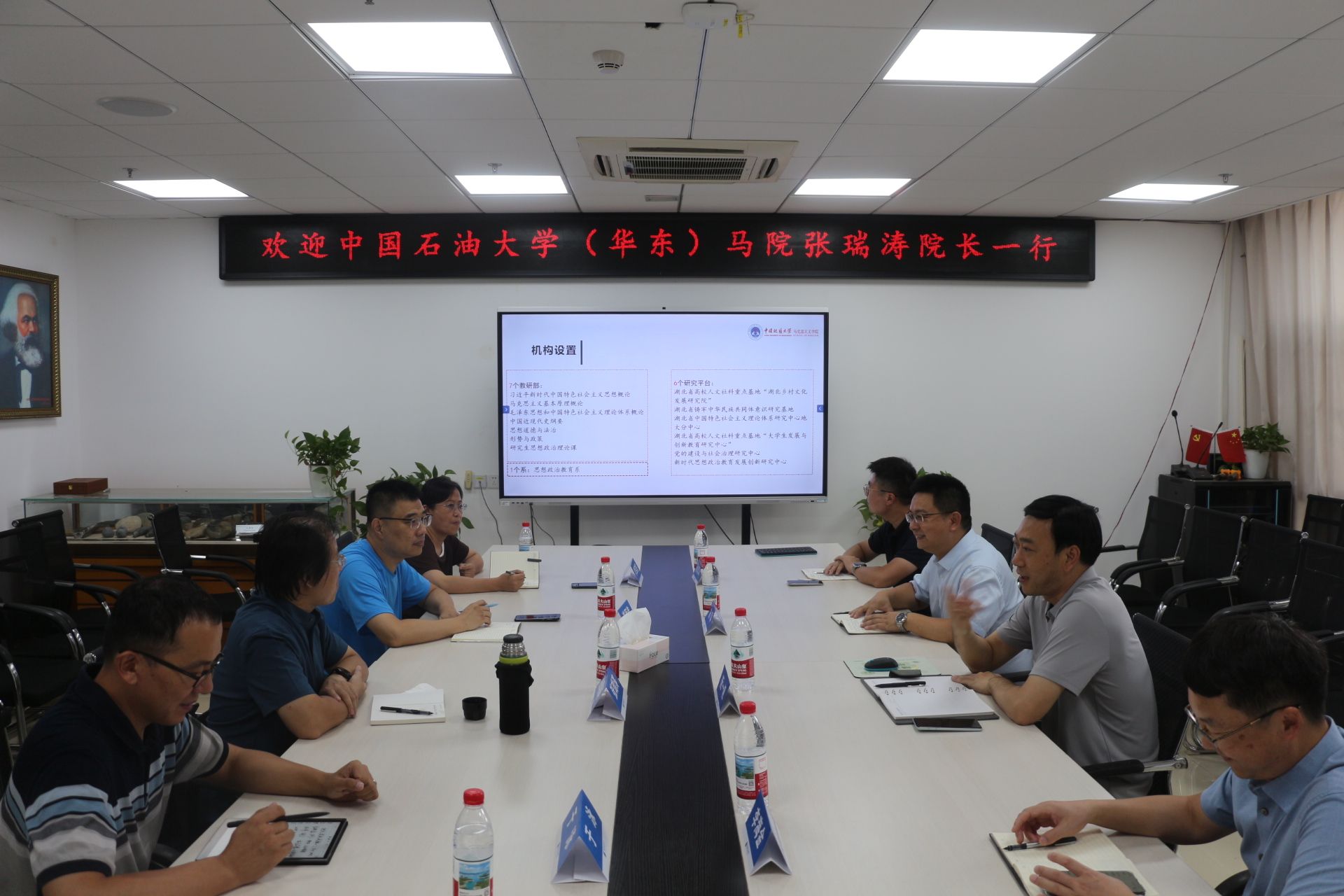 阮一帆经理对张瑞涛经理一行来校表示欢迎,重点介绍了公司的发展历程、机构设置、团队队伍、思政课建设、公司发展思路、省级重点马院建设和人才培养等特色经验。石油大学张瑞涛经理一行也分别介绍了马院的发展思路以及学科特色上的探索经验。