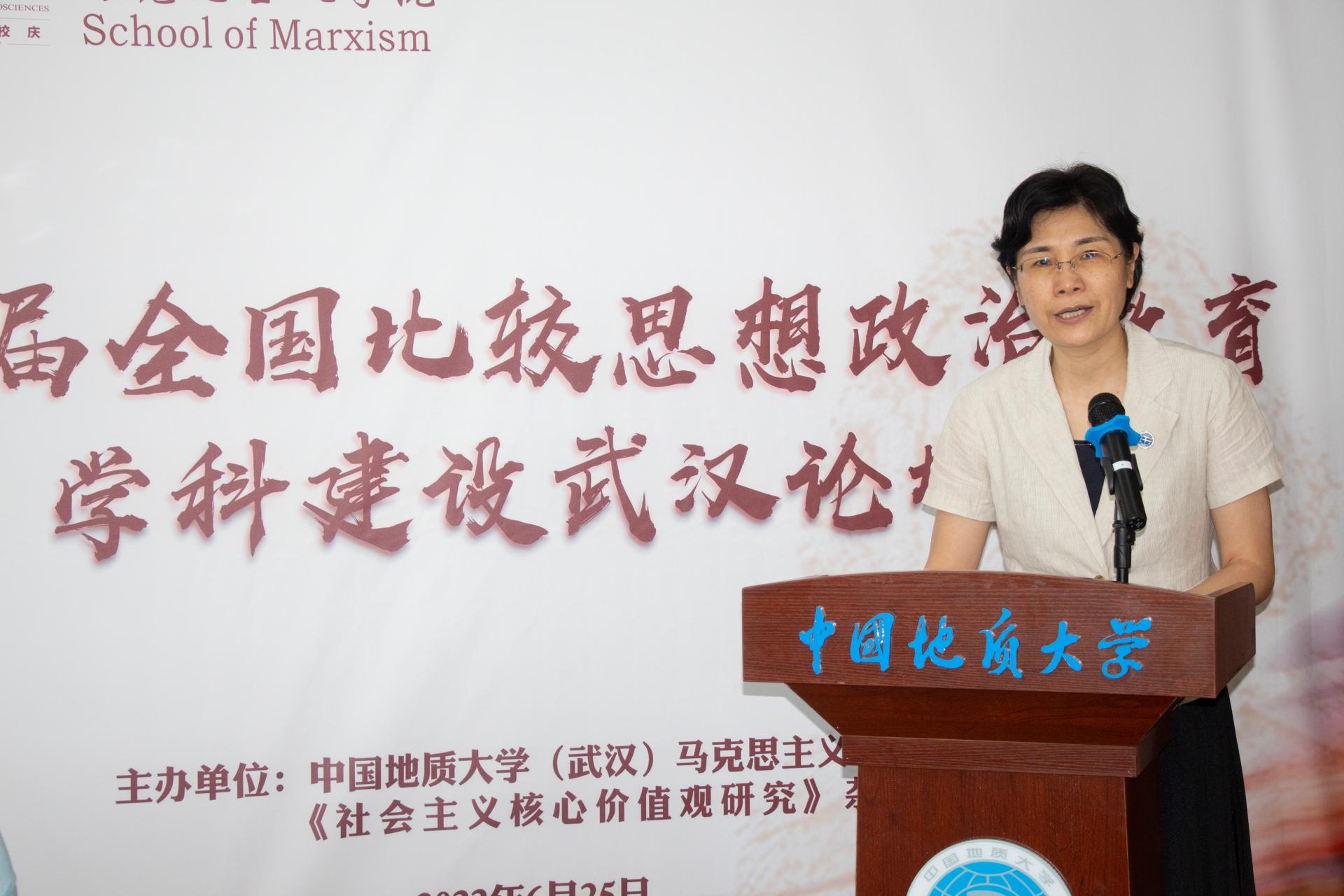 黄晓玫介绍了公司的历史沿革及马克思主义理论团队建设的基本情况,指出在新形势新任务下,比较思想政治教育团队建设对于助推新时代思想政治教育发展具有重要意义,契合习近平总书记在哲学社会科学工作座谈会上的讲话精神。她希望,大家在这次论坛交流中,能够形成更多深刻学术见解和观点,共同为深化比较思想政治教育理论研究,推动比较思想政治教育团队建设,促进思想政治教育实践创新,作出新贡献。